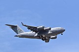 An Air Force C-17 Globemaster transport plane in flight at the Moses Lake Airshow Saturday.