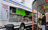 Raul Gomez-Eudave, 18, hands a customer her order Monday at the Tacos Michoacan food truck …