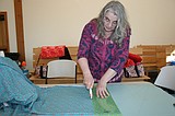 Ann Downs cuts fabric for a charitable project at Community Sew Day April 4, sponsored …