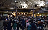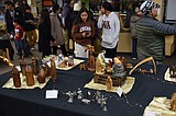 Several nativity displays sit on a table in the Wahluke High School library as community …