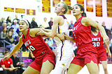 Connor Vanderweyst/Columbia Basin Herald - Moses Lake's Abby Rathbun (40) tries to avoid a block …