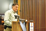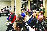 Soap Lake resident and former council member Barney Berg, standing at left, prior to asking …