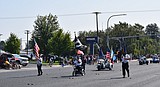 Veterans march at the head of a long line of 2023 Othello Independence Day parade …