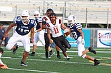 Moses Lake senior Sergio Guzman (11) runs out of bounds as he tries to avoid …