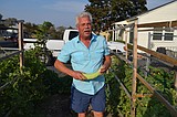 Don Key holds an Armenian cucumber — really a type of muskmelon — he has …