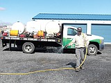 Sean Correll, of Tatum Lawn Care, sprays weeds at ABC Rental in Moses Lake.