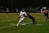 Ephrata High School junior Joshua Green (2) tackles an opponent during the match against Royal …