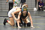 Kendra Perez of Toppenish High School prepares to take on Brianna Martinez of Moses Lake …