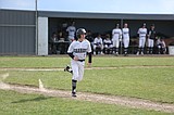 ACH junior Everett Wood spring to first base after making contact with a pitch.