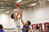 Moses Lake junior Tyce Miller (22) rises toward the rim for a lay-up during Monday’s …
