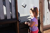 Jaymee Welch works on some final touches for a mailbox canvas in the Larson community …
