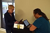 A volunteer brings food to a senior during the 2022 Senior Picnic in Moses Lake. …