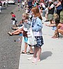 Nya Quinn, 9, right, and her brother Liam Quinn, 6, wave flags at George’s Fourth …