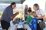 Lloyd Barkley, left, shows children how a projectile point is added to a spear or …