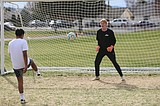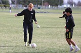 Othello senior Aksel Jebsen, left, works on a passing drill during a March 25 practice. …