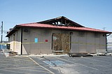 The collapsed roof and boarded windows are evidence of the fire that destroyed Real Deals …