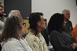 A panel including a law enforcement officer, school officials and a prosecutor sit on a …