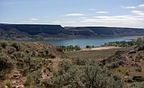 The trees on the shoreline of Devil’s Punch Bowl shrink looking down from near the …