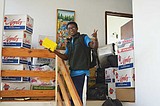 Washington apple boxes sent sent last year by the Red Rock Elementary Humanitarian Club, filled …