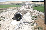 Two people tour a tube that is part of the Weber Siphon on Tuesday.