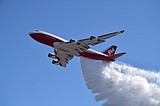 Global Supertanker, a 747 modified to fight wildfires, drops nearly 20,000 gallons of water on …