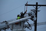 Grant County PUD line workers go about the tricky business of removing electrical wires from …