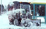A city worker examines the clock that normally sits in the intersection of W. Third …