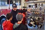 File photo Moses Lake firefighter Eric Shurtz shows a couple of boys how a fire …