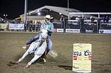 Audrey Tibbs of Moses Lake rounds the barrel during the barrel racing event on Saturday …