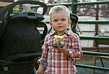Hunter Ketterer holds up his trophy after taking part in the Mutton Bustin’ event at …