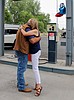 Kurt Adkinson embraces his wife, Theresa, after signing off with the Washington State Patrol for …