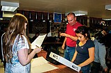 Quincy High School teacher Mike Wallace (red shirt) gives instructions to students for a project. …
