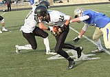 Pete Christensen Photo - Kaden Jenks charges to a hole in the Deer Park line …