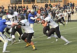 Pete Christensen Photo - Royal defensive end Adrian Trinidad goes high to knock down a …