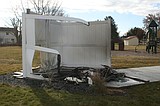 Fire destroyed a toilet and surrounding shelter in the park at Pelican Point Monday morning.