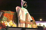 A pair of vaqueros toss candy to the kids in the Christmas in the Park …