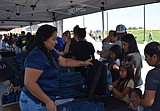 Teens play a game in Hund Memorial Park in Mattawa at the July health fair/community …