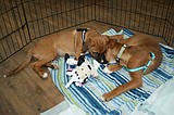 Puppies Albon and Arthon play with a new toy during an adoption event in Ephrata …