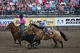 The steer wrestling event sees a rider and an assistant - called a hazer - …