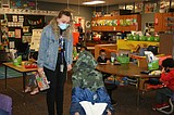 Scootney Springs kindergarten teacher Josie wicks talks to a student in her afternoon class on …