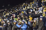The Knights running to greet fans who ran on the field to celebrate winning their …