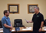 Ryan Piercy, right, is sworn in to a seat on the Royal City City Council …