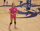 An attendee practices passing at the Vikings volleyball camp. The camp ran from Tuesday through …