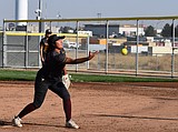 Anisa Valdez pitches for the Mavs during their first game of the afternoon against Eisenhower. …