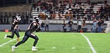 Eagles’ sophomore Robert Aldana receives the kickoff and runs down the field against Dayton. Head …