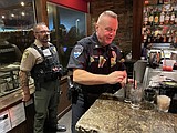 Gary Mansford, left, and Moses Lake Police Chief David Sands work behind the bar at …