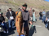 Dallas Wells, a bowfisher from Vancouver, Washington holds up a carp he shot in Moses …