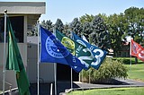 Washington Junior Golf Association district flags fly at the first tee box at the Moses …
