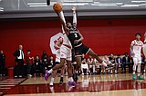 Junior Garrett Anderson attempts to steal the ball from Matthys Van Bylandt of Simon Fraser …