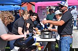 Warden Community Days volunteers prepare and serve food to the community in Volunteer Park Monday …